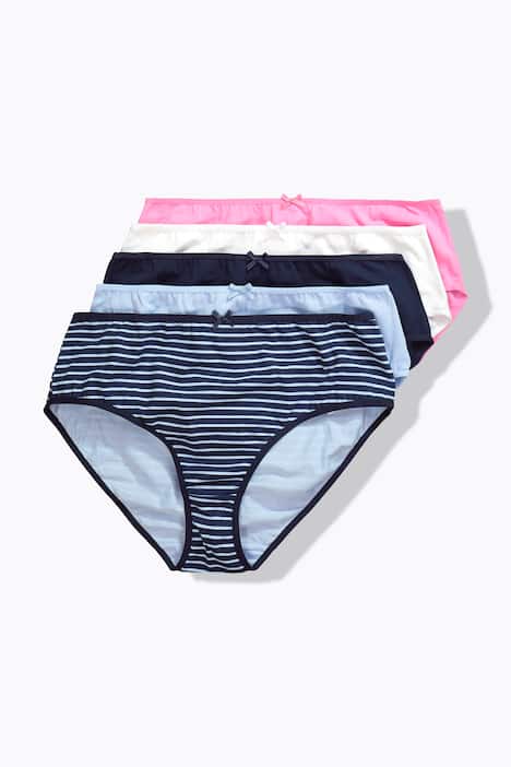 Midislips im 5er-Pack. 1 x mit feinen Streifen, 4 x in dazu passenden Farben. Bewährte Passform, perfekter Tragekomfort. Midislips zeichnen sich durch einen hohen Tragekomfort aus. Diese beliebte Slipform hat eine niedrige Leibhöhe, einen mittelhohen Beinausschnitt und bedeckt den Po komplett. Bequem und formstabil durch Elasthananteil.